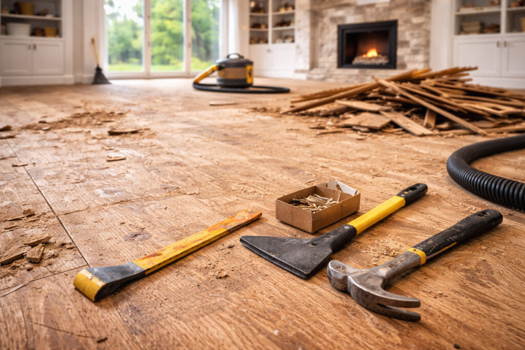 Includes: removal, cleanup, basic leveling, and subfloor repairs as needed.